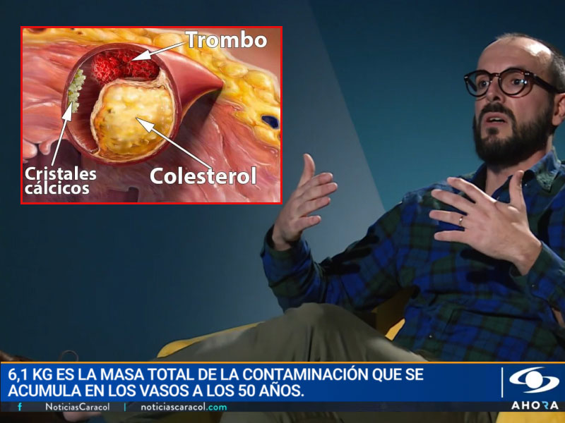 Las placas de colesterol representan el 65-70% de la contaminación vascular. A los 50 años, se acumulan hasta 5 kg de colesterol en los vasos, reduciendo su diámetro 4-5 veces.